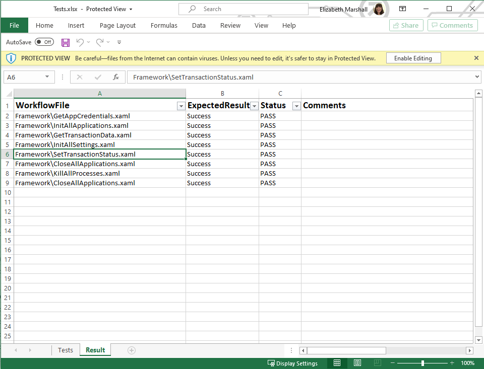 There’s a piece of development work alongside the testing element (in fact, the tests were the easiest bit by far). An Excel spreadsheet included as part of the REFramework standardised template allowed each part of the framework to be tested in isolation. This takes seconds.