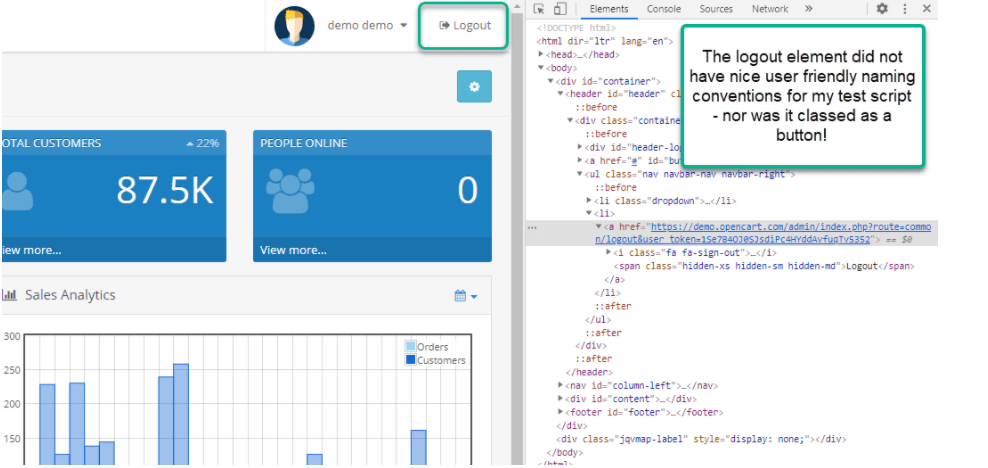 I had created a test framework which executed a few basic tests such as login on the OpenCart admin demo website – this is a great one to use for testing because it has a lot of features.
