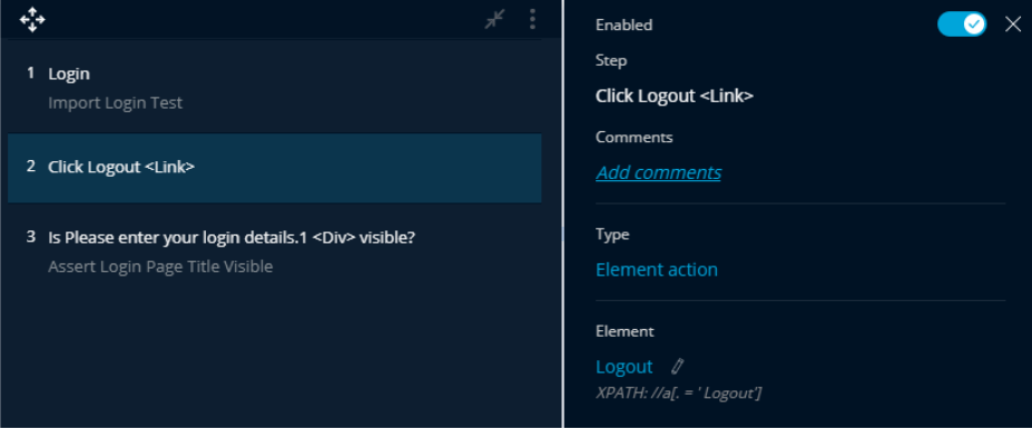 With the Test Project recorder, all I had to do was click “logout” and it added a user readable step into my test case, no manual intervention required. To someone like me, this is literally hours saved.