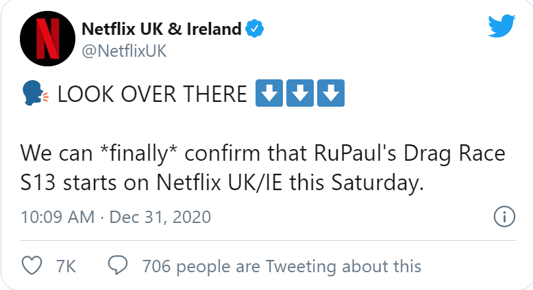 OK. So I have only just discovered that the new season of reality TV show RuPaul’s Drag Race will air on Netflix Saturday 2nd Jan 2021 in the UK. I cannot tell you how ludicrously excited I am by this news. 🥳