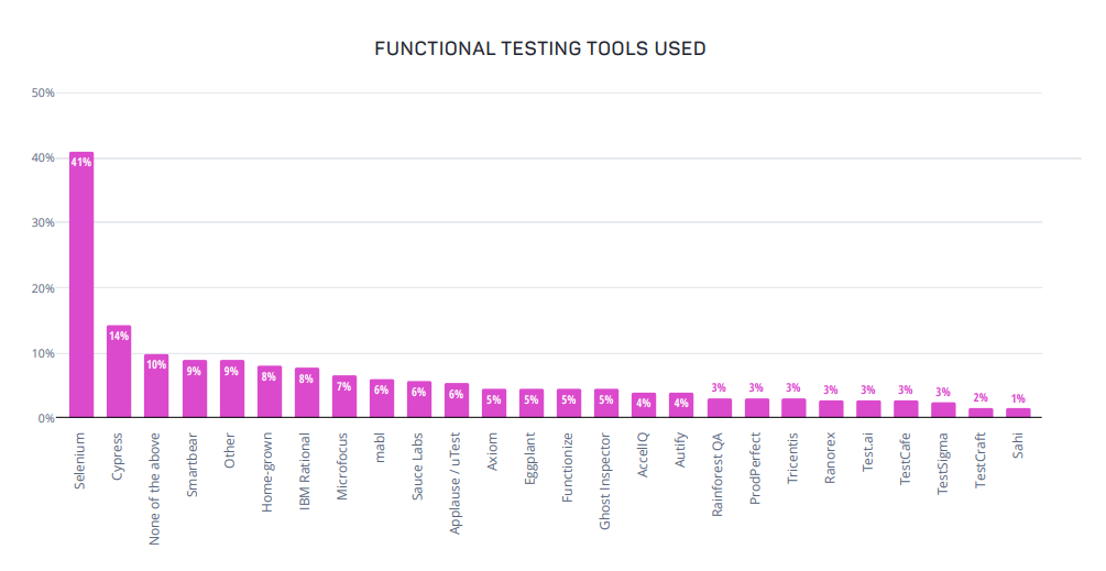 According to the recent Mabl state of devOps report, Selenium is the tool of choice for the overwhelming majority of survey respondents using a functional testing tool:-