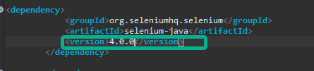 One thing that perhaps is obvious to people who play with this stuff all day but wasn’t to me, was the missing reference to pom.xml. Perhaps because other setups use a different filename to hold their Selenium dependencies the articles weren’t explicit, but as a Maven user, in order to upgrade to Selenium 4.0 you need to go to the pom.xml and find the Selenium Java dependency and update the version like this:-
