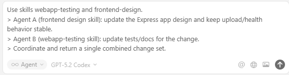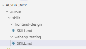 I added the SKILLS.md file into my project under .cursor, as directed by the agent, along with a skill for webapp-testing:-